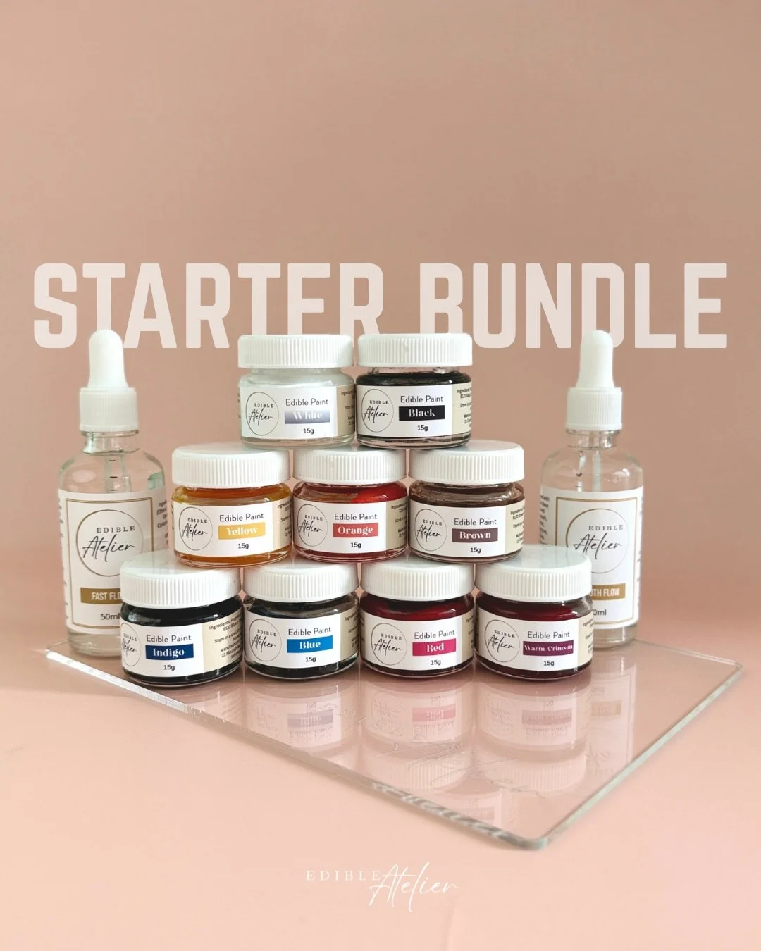 Edible Atelier was born from a desire to bring the artistry of fine painting into the world of cakes and cookies. Each colour is carefully crafted to perform beautifully — smooth, blendable, and vibrant — giving decorators the tools to create with confidence and precision. More than just paint, it’s a celebration of creativity, craftsmanship, and the joy of edible art.